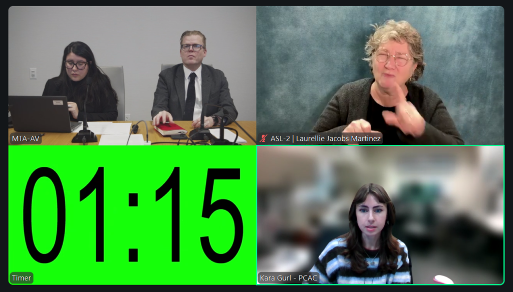 Good morning! I’m Kara Gurl, Planning and Advocacy Manager at the Permanent Citizens Advisory Committee to the MTA (PCAC).